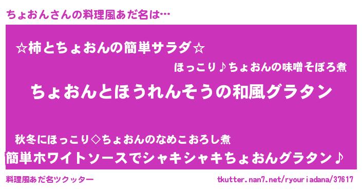 | 意味不明あだ名 | 『もやし科ちょおん属』『自称ちょおん』 |