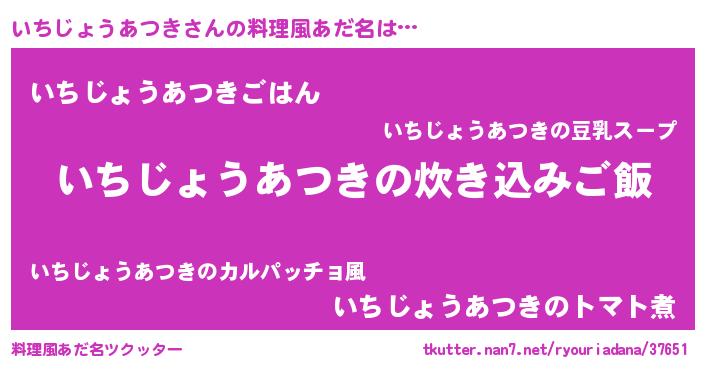 | 男性向けラノベタイトル風あだ名 | 『うちのいちじょうあつきが世界を掌握している!』 |