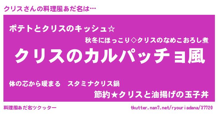 | 意味不明あだ名 | 『住所不定無職クリス(74歳)』 |