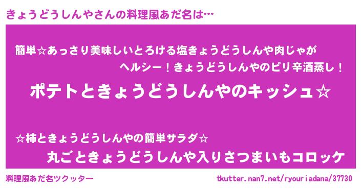 | 意味不明あだ名 | 『とにかく怪しいきょうどうしんや』 |