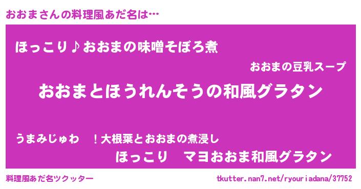| ヒーロー風カッコイイあだ名 | 『スーパーオオマ』『仮面オオダー』 |