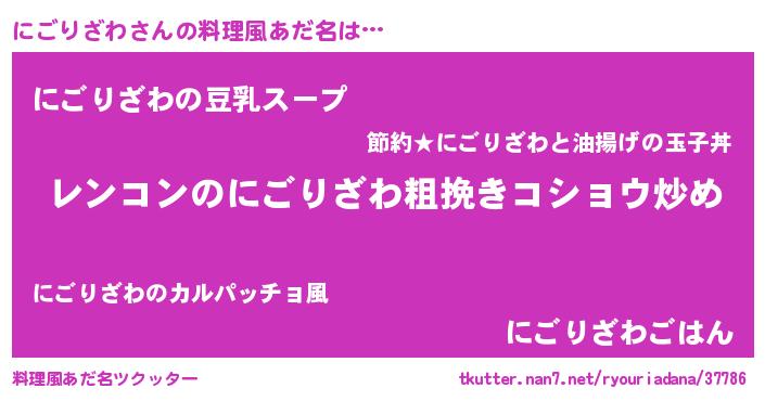 | ポケモン風あだ名 | 『ニゴセウス』『ヒニゴリザワ』 |