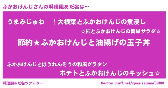 | ヒーロー風カッコイイあだ名 | 『スーパーフカオケンジ』『銀牙騎士フカ』 |