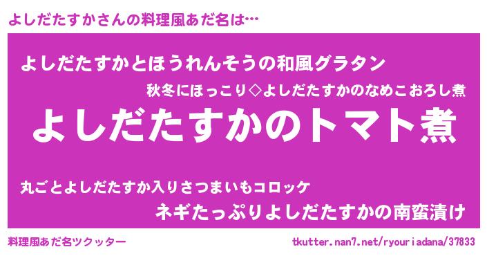 | ヘコむあだ名 | 『よしふぇ~』『なまこ酢』 |