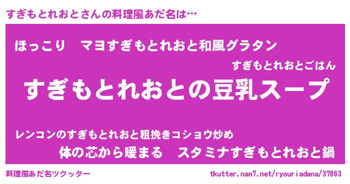 | 欧米人風あだ名 | 『ウサインすぎもとれおと』 |