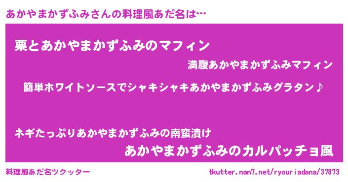 | 男性向けラノベタイトル風あだ名 | 『あかやまかずふみの嫁は女の子じゃないと思った?』 |