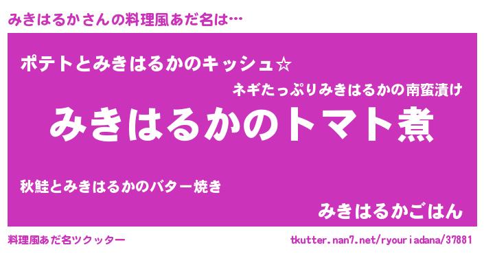 | 女子向けラノベタイトル風あだ名 | 『みきはるか夫妻のなれそめ』 |