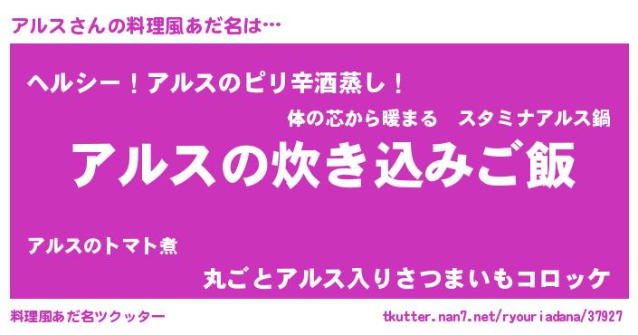 | ヒーロー風カッコイイあだ名 | 『最強戦士アルス』『仮面アルダー』 |