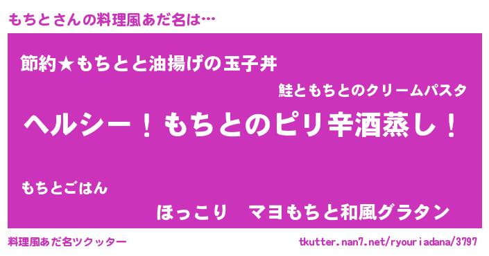 | 意味不明あだ名 | 『自称もちと』『ペロリンもちと』 |