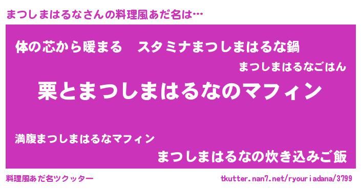 | 男性向けラノベタイトル風あだ名 | 『はたらくまつしまはるなさま!』 |