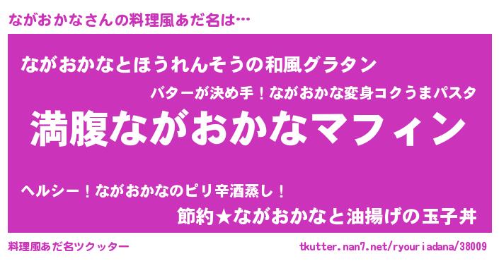 | 女子向けラノベタイトル風あだ名 | 『異世界で失敗しない100のながおかな』 |