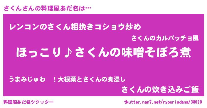 | ヘコむあだ名 | 『さくもー』『豆乳』『さく太郎』 |