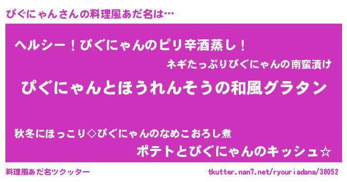 | 男性向けラノベタイトル風あだ名 | 『転生したらぴぐにゃんだった件』 |