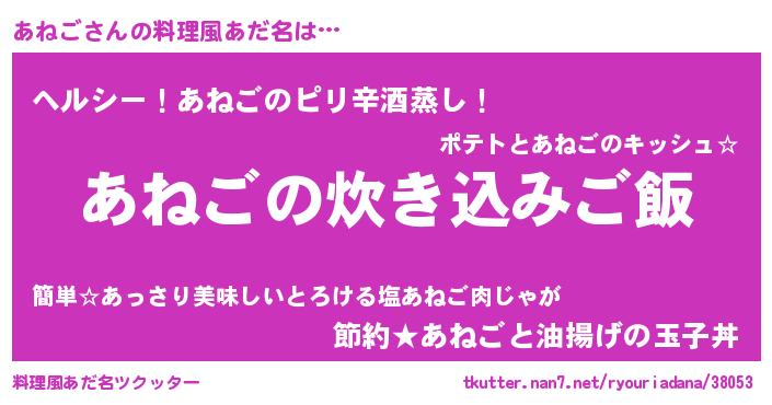 | 意味不明あだ名 | 『自称あねご』『ペロリンあねご』 |