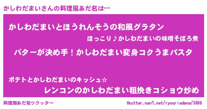 | 女子向けラノベタイトル風あだ名 | 『かしわだまい恋絵巻』 |
