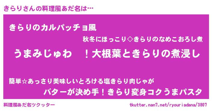 | 意味不明あだ名 | 『きらりフォーエバー』『永久保存きらり』 |