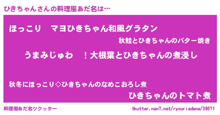 | 欧米人風あだ名 | 『ひきちゃんクリステル』 |