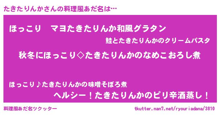 | 男性向けラノベタイトル風あだ名 | 『たきたりんかに滅ぼされるだけの簡単なお仕事です』 |