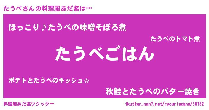 | 意味不明あだ名 | 『たけのこ科たうべ属』『ペロリンたうべ』 |