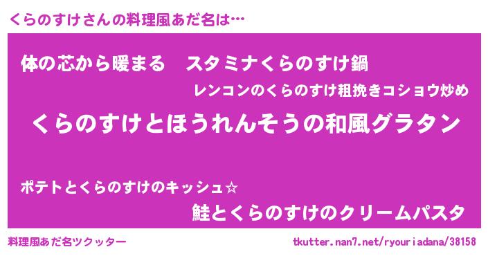 | 意味不明あだ名 | 『なめこ科くらのすけ属』 |