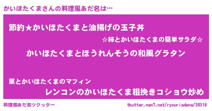 | ヘコむあだ名 | 『かいっふぃ~』『かいほたくま(震え声)』 |