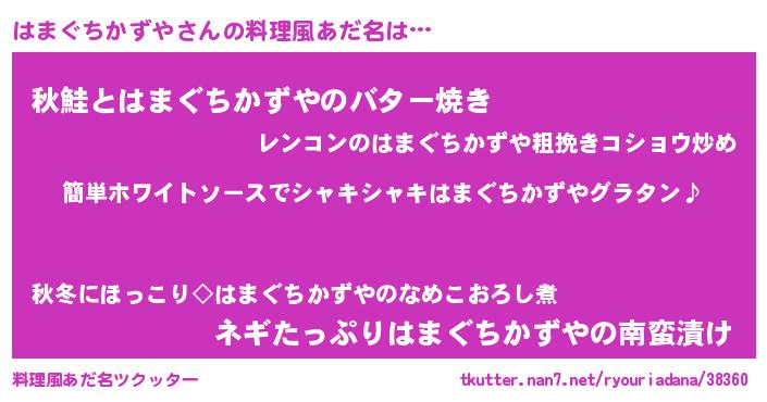 | 男性向けラノベタイトル風あだ名 | 『はまぐちかずやの嫁は女の子じゃないと思った?』 |