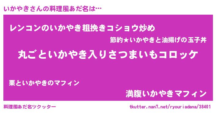 | 男性向けラノベタイトル風あだ名 | 『この素晴らしい世界にいかやきを!』 |