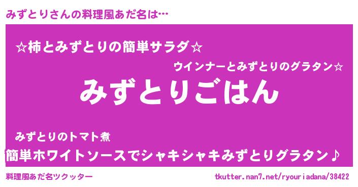 | ヒーロー風カッコイイあだ名 | 『黄金騎士ミズ』『ウルトラみずとりマン』 |