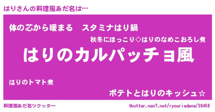 | ピコ太郎風あだ名 | 『ピハ太郎』『ハリ三郎』『ハハ太郎』 |
