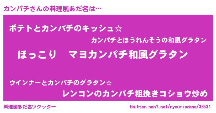 | 男性向けラノベタイトル風あだ名 | 『この素晴らしい世界にカンパチを!』 |