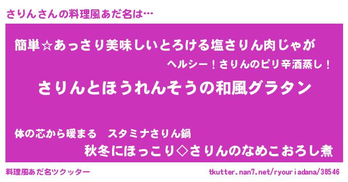 | 胡散臭い通販商品みたいなあだ名 | 『来世でも幸せになれる健康食品…その名も「さりん」』 |