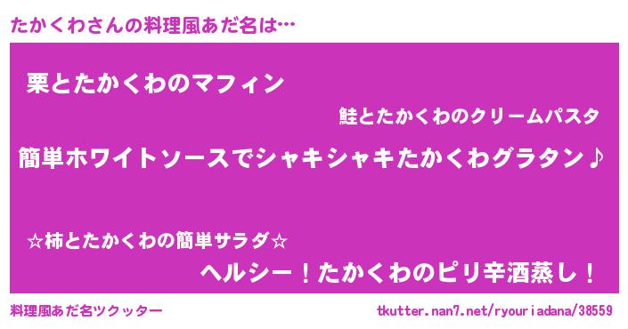 | 男性向けラノベタイトル風あだ名 | 『たかくわの嫁は女の子じゃないと思った?』 |