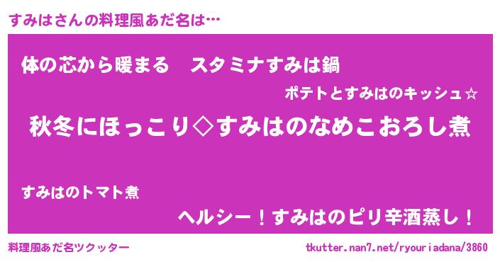 | ヘコむあだ名 | 『酢こんぶ』『すみっぺ』『すみもー』 |