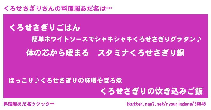| 欧米人風あだ名 | 『くろせさぎりクリステル』 |