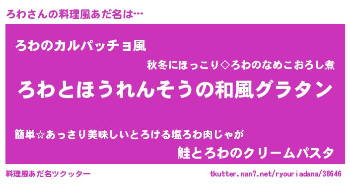 | ヘコむあだ名 | 『ろわ(苦笑)』『牛乳』『ろわにー』 |