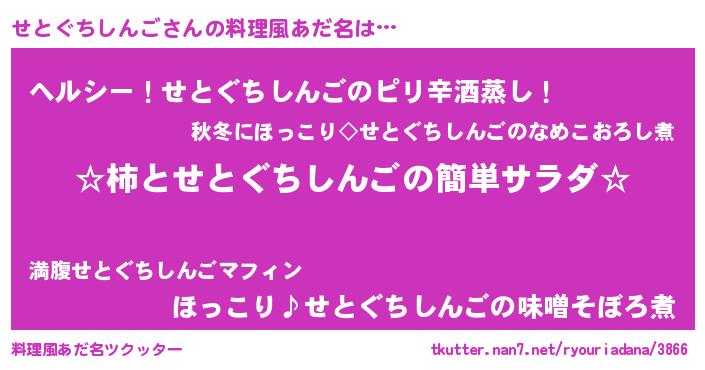 | 意味不明あだ名 | 『自称せとぐちしんご』 |