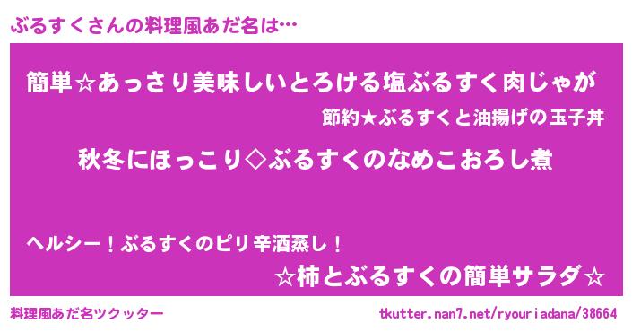| 胡散臭い通販商品みたいなあだ名 | 『前代未聞の健康食品…その名も「ぶるすく」』 |