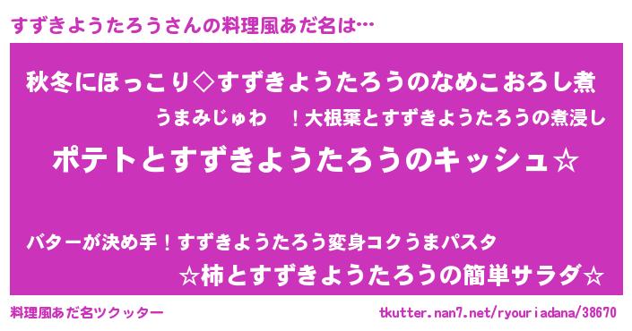 | ポケモン風あだ名 | 『ヒスズキヨウタロウ』『スズゴンZ』 |