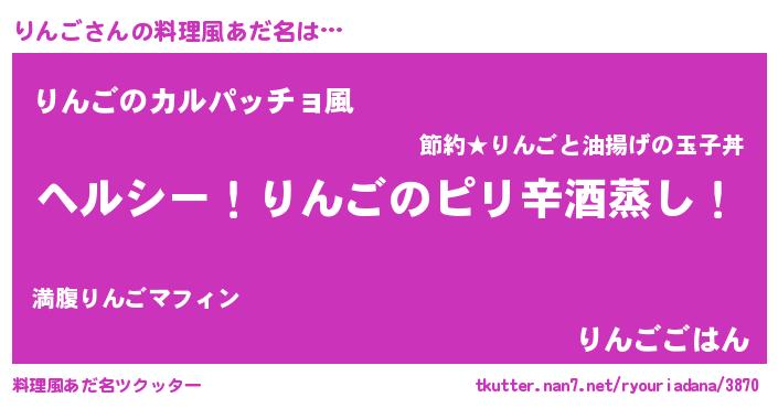 | 男性向けラノベタイトル風あだ名 | 『Re:りんごから始める異世界生活』 |
