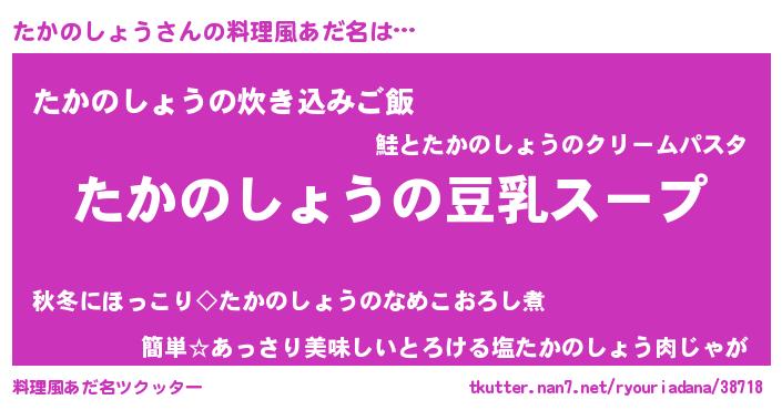 | ヘコむあだ名 | 『たかぷりん』『たかのしょう(遠い目)』 |