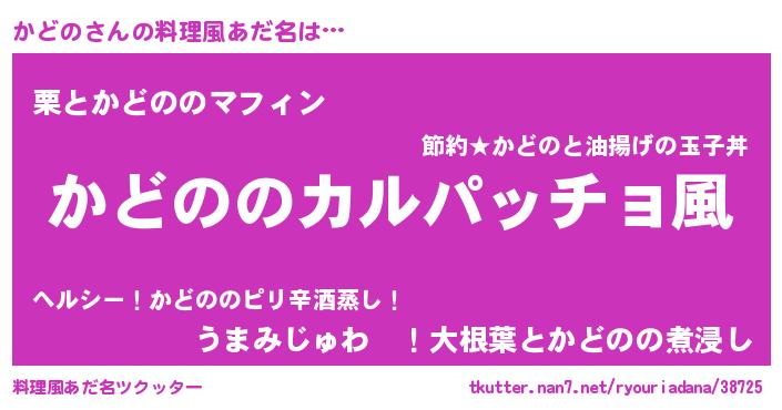 | 男性向けラノベタイトル風あだ名 | 『魔弾の王とかどの』『かどのの憂鬱』 |