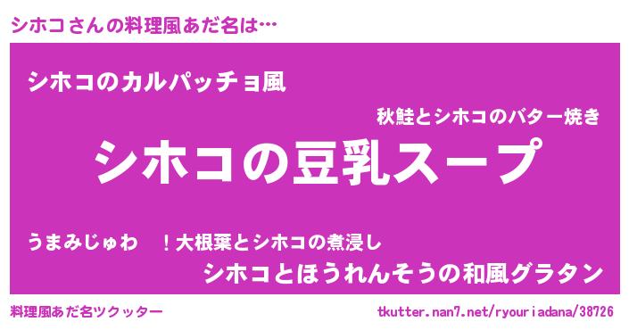 | 胡散臭い通販商品みたいなあだ名 | 『信頼と実績のサプリメント…その名も「シホコ」』 |