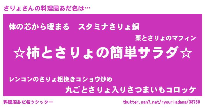 | 意味不明あだ名 | 『さりょフォーエバー』『自称さりょ』 |