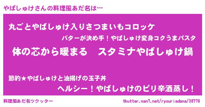 | 男性向けラノベタイトル風あだ名 | 『やはりやばしゅけの青春ラブコメはまちがっている 』 |