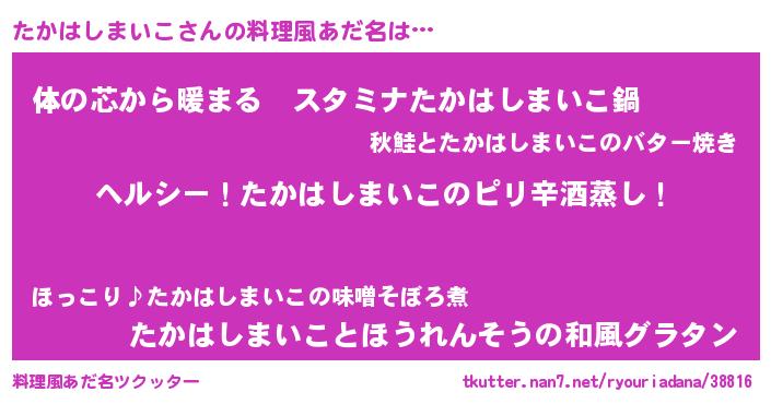 | 男性向けラノベタイトル風あだ名 | 『Re:たかはしまいこから始める異世界生活』 |