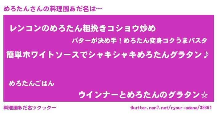 | 女子向けラノベタイトル風あだ名 | 『めろたん様がみてる』『めろたん恋絵巻』 |