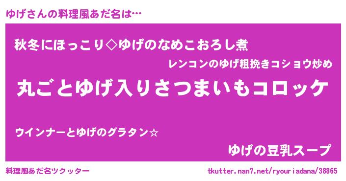 | 男性向けラノベタイトル風あだ名 | 『魔弾の王とゆげ』『魔法科高校のゆげ』 |