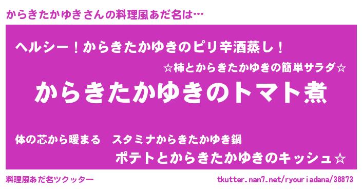 | 男性向けラノベタイトル風あだ名 | 『おまえをオタクにしてやるから、俺をからきたかゆきにしてくれ! 』 |