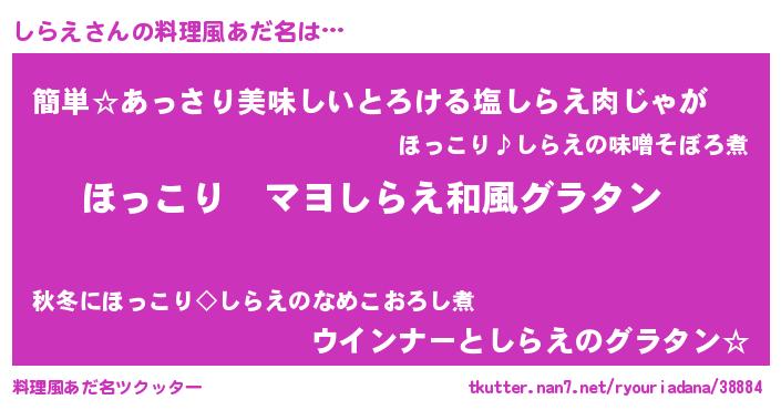 | 意味不明あだ名 | 『住所不定無職しらえ(53歳)』 |