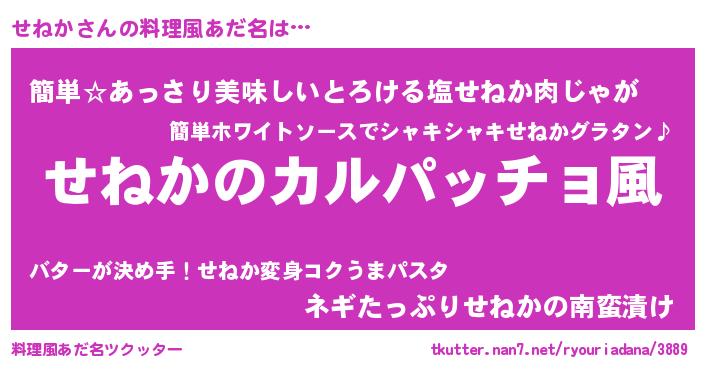 | 意味不明あだ名 | 『住所不定無職せねか(41歳)』 |